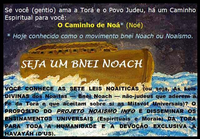 Movimento Bnei Noach* ou simplesmente Bnei Noach, ou ainda Noaísmo, é o Caminho da Torá de D’US para todos os não-judeus do mundo (ou, em outras palavras, é o Caminho Espiritual dos Filhos/Descendentes de Noá (Noé)) * Lê-se benêi Nôarr. Por Rav Shimshon Bisker, de Israel, o Rabino Supervisor do Site Bnei Noach Projeto Noaismo … Continuar lendo Bnei Noach: O Caminho da Torá para os não-judeus