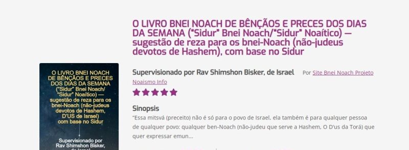 O mesmo vale para os impressos Bnei Noach Guia Básico 1 e 2 do Rav Shimshon Bisker (você pode adquiri-los no Clube de Autores Portugal ou Espanha).