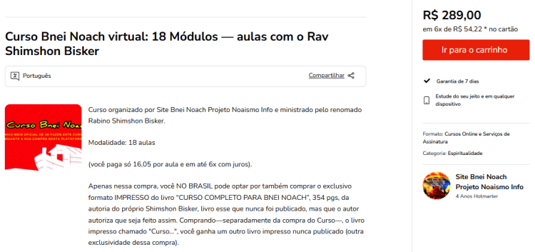 Já está disponível para compra no site da Hotmart, graças a D’us, a Modalidade do Curso virtual Bnei Noach do Site Bnei Noach Projeto Noaismo Info com aulas do aclamado e respeitadíssimo Rav Shimshon Bisker, de Israel (a única autoridade rabínica brasileira especialista no tema de Bnei Noach):