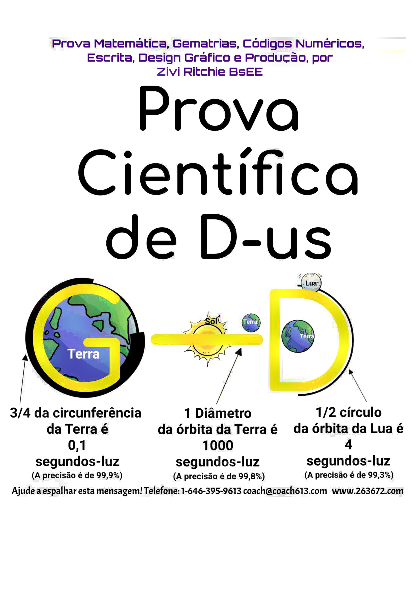 O livro digital A PROVA CIENTÍFICA DE D’US contém provas matemáticas de que o mundo foi criado por Deus. Esta é a primeira vez na História Mundial que essa prova foi documentada utilizando a matemática probabilística clássica. Através das medições exatas mais recentes do nosso sistema solar, podemos agora constatar que o mundo foi criado por um projeto inteligente. A probabilidade de todas as medições a seguir ocorrerem juntas por acaso é de 1/9,7×10^30, o que é conclusivamente impossível. Esta é uma chance em bilhões de bilhões de bilhões!