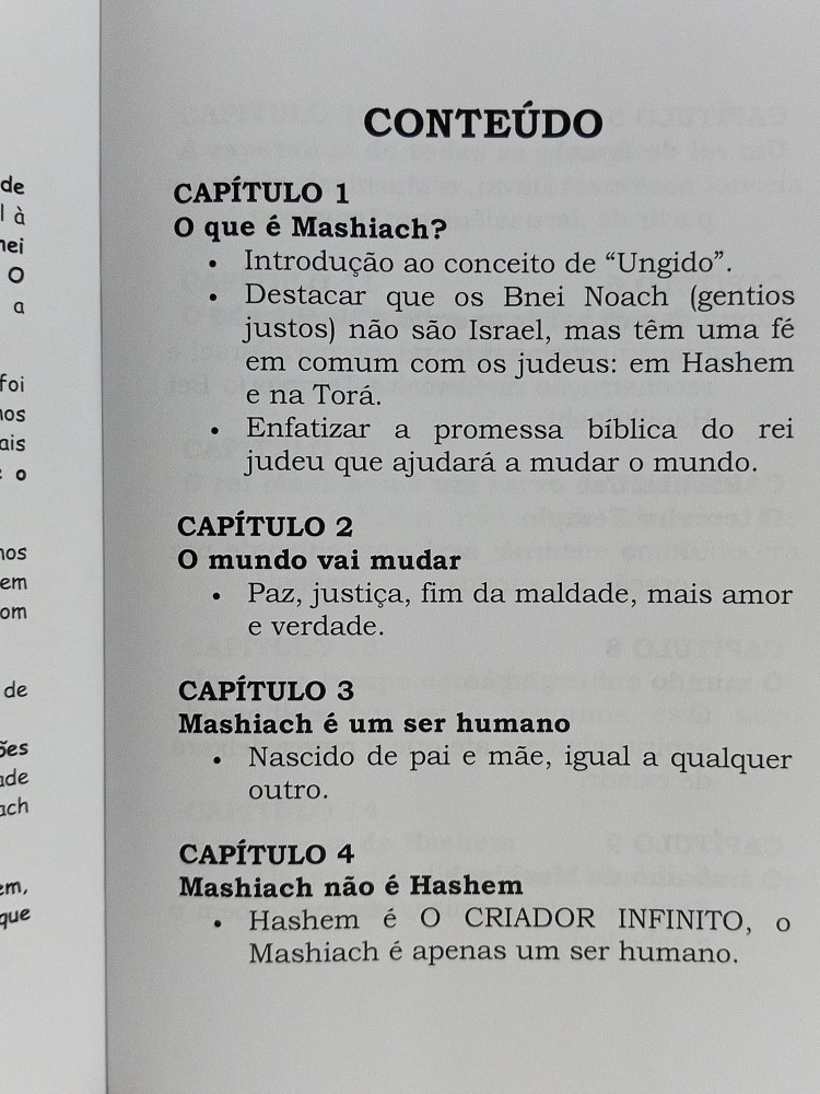 Nesta obra, o pequeno leitor — a criança e o jovem noaítas — entenderá por completo os conceitos básicos e fundamentais da promessa bíblica do rei Messias, que quando chegar, e é certo que ele ainda não chegou, inaugurará a tão esperada e sonhada Era Messiânica. E o leitor terá o pleno discernimento de que esse futuro rei judeu não é, em hipótese alguma, uma divindade, parte de Deus, Deus ou Hashem.