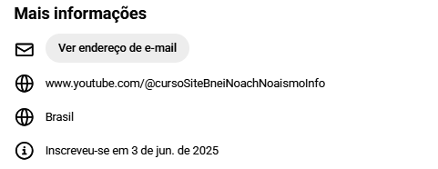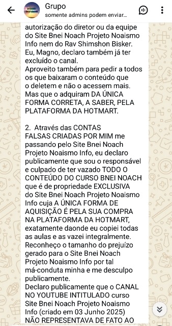 Declaro publicamente que o CANAL NO YOUTUBE INTITULADO curso Site Bnei Noach Projeto Noaismo Info (criado em 03 Junho 2025) NÃO REPRESENTAVA DE FATO AO PROJETO NOAISMO INFO MAS ERA UMA CONTA FALSA CRIADA POR MIM.