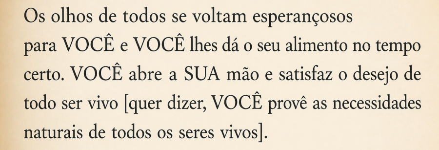 • Salmo 145, principalmente o versículo 16, que diz: “Abres TUA mão…”;